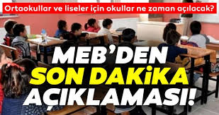 Okullar 31 ağustos'ta açılacak mi? Yaz tatili bitmesine kaç gün kaldı? Peki okullar ne zaman açılacak? .19 haziran 2020'de okulların tatil olacağını açıklamasının ardından en büyük soru okullar ne zaman açılacak oldu. Yaz tatilinin iki aylık bölümünü geride bırakan öğrenciler ve velileri okulların ne zaman açılacağını merak etmeye başladı.